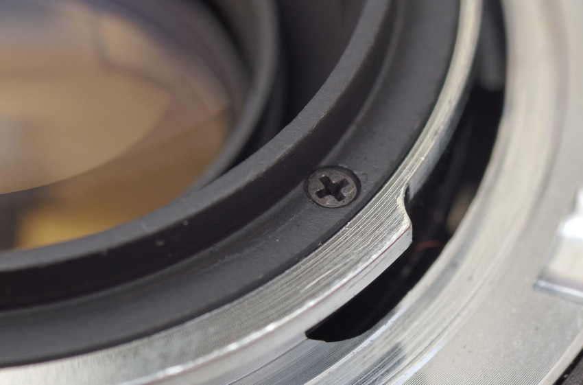 Der Ring mit der langen Schutzkante ist mit zwei winzigen Schrauben am Objektiv befestigt. Mithilfe eines kleinen Kreuzschlitz-Schraubenziehers kann man sie abschrauben und danach den Ring entfernen. Dadurch wird das Objektiv nicht beschädigt und verliert auch keine Stabilität.