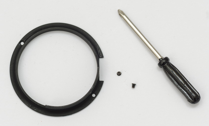 Den Ring mit der Schutzkante, die beiden Schrauben und den passenden Schraubenzieher hebt man am besten in einer kleinen Tüte mit Ziplockverschluss irgendwo auf, wo man die Sachen später bei etwaigen Bedarf auch wieder finden. Am besten legt man sich einen Zettel in die Tüte, auf dem steht, wofür die Teile sind.