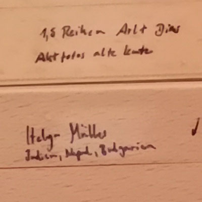 In einem Flur, der nur durch Türöffnungen aus angrenzenden Zimmern Licht erhält, dient ein Teil des Regals im dunklen Bodenbereich als Testmotiv zum Vergleich. Es wird freihand im Standardmodus und ohne Zoom fotografiert.