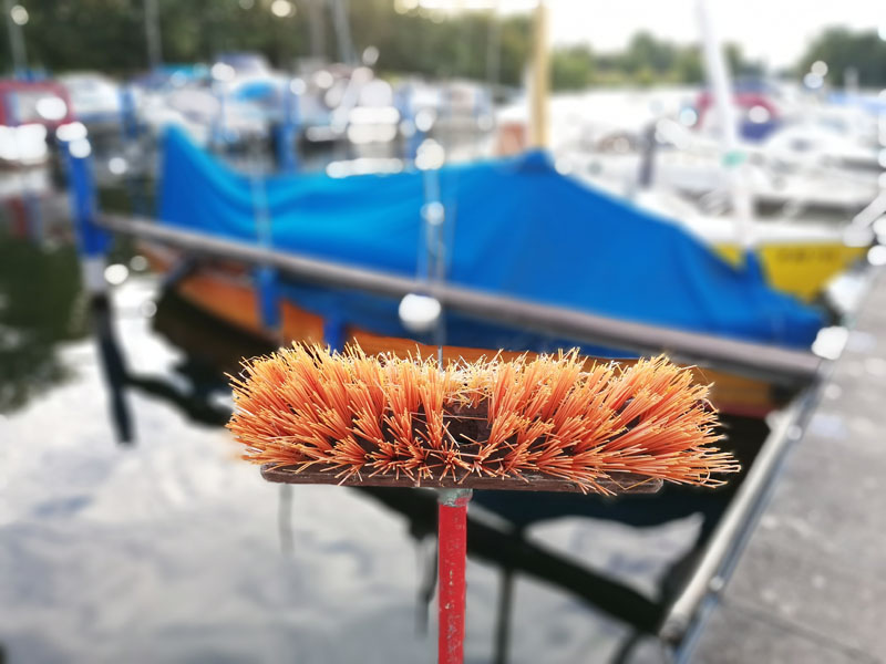Besen aus kurzer Entfernung (ca. 30 cm). Der Hintergrund ist etwas unscharf.