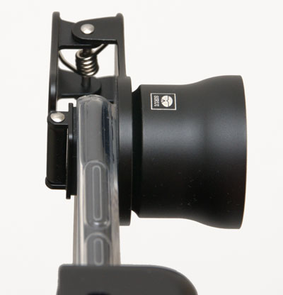 Nachteilig ist jedoch, dass der Clip bei jeder Anbringung genau vor das Smartphoneobjektiv zu positionieren ist. Beim Blick durch eine vergütete Vorsatzoptik sieht man das dahinterliegende Smartphoneobjektiv und kann die Klemme entsprechend verschieben. Im Dunkeln ist das jedoch sehr schwierig.
