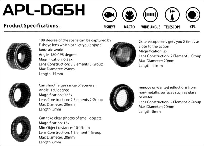| Bezeichnung | APLDG5H Deluxe 5 in 1 Lens Kit |