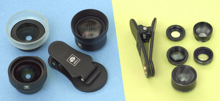 Links: Vorsatzobjektive von SIRUI / Rechts: Vorsatzoptiken von Apexel.