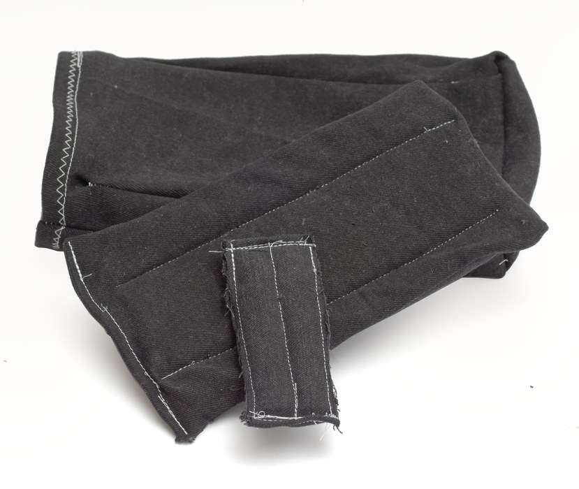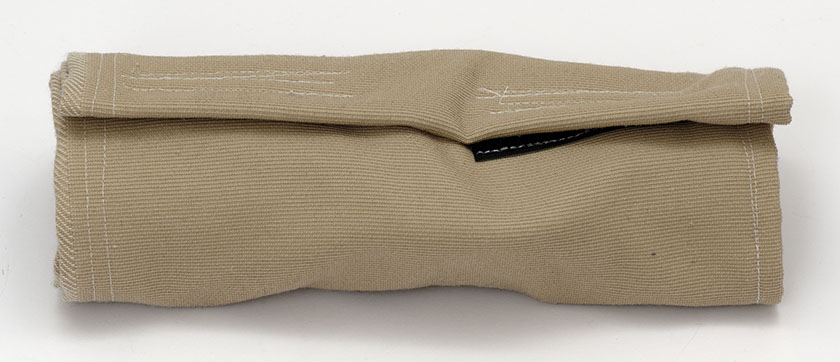 Für die Zubehörklemme des SeaTough 4 legte ich zwei Stücke Polsterstoff übereinander, vernähte die Kanten und nähte Klettverschlüsse auf zwei Seiten. Die Zubehörklemme kann in den Stoff eingewickelt werden. Die Klettverschlüsse halten die Rolle zusammen. So können die harten Metallteile nicht zerkratzen und selber auch keine anderen Gegenstände beschädigen. Aus demselben Stoff nähte ich eine weiche und dicke Hülle für die große Nahlinse.
