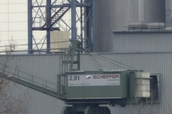 100% Ausschnitt aus dem obigen Bild. Für die trübe Sicht und Blende 4,5 ist das Ergebnis überraschend gut.