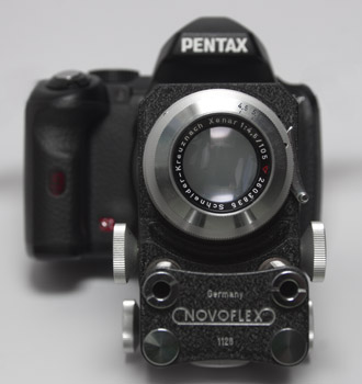 " Ich besitze selbst mehrere alte Novoflex & Ihaagee Balgengeräte und stand auch vor dem Problem, sie an meine Canon Kameras anzupassen.Es gibt eine sehr elegante Möglichkeit, Exakta-Anschlüsse ohne Sägen und Ausbau etc. direkt an fast jedes andere Bajonett anzupassen.
