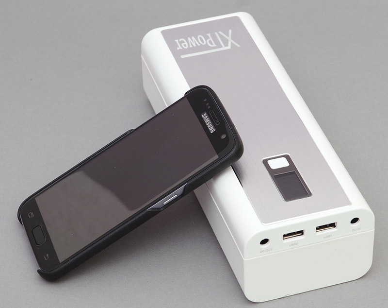 Der XTPower MP-50000 neben einem Samsung S7 Smartphone zum Größenvergleich.
