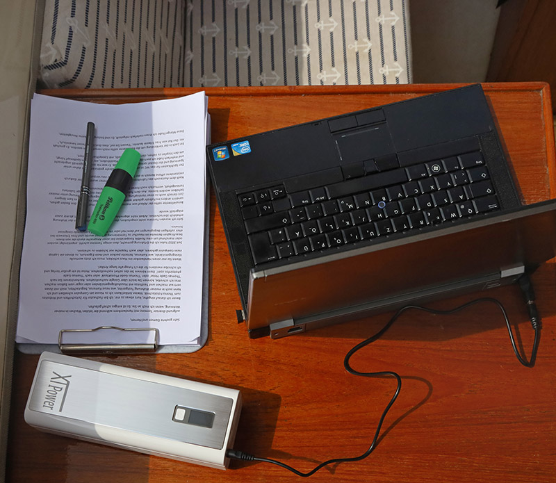 Perfekt für Schreibarbeiten am Laptop fernab einer Steckdose wenn der interne Akku nicht reicht.