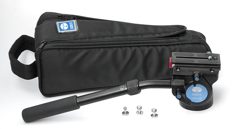 Der Sirui VH-10 Videoneiger wird mit einer gepolsterten Tasche geliefert, was überrascht, weil Videoneiger eigentlich fest auf Stativen befestigt bleiben. Für diejenigen, die das anders handhaben, ist die spezielle Tasche ein netter Bonus.