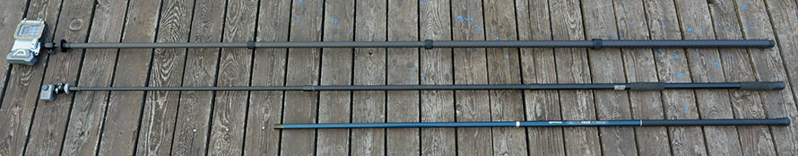 B.I.G. Monopod (3 Meter / 300 €) neben Kescherstäben (2 - 3 Meter / 10 bis 25 €)