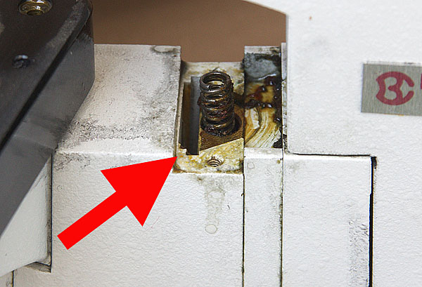 Bei diesem Biolam dreht das große Rad des Feintrieb der Scharfstellung durch und zeigt keine Wirkung. Nach dem Abschrauben der Platte, unter der sich die Feder für den Gegendruck befindet, stößt man auf Fett, dass einer klebrigen Masse ähnelt. Es schmiert nicht mehr, sondern blockiert jede Bewegung.