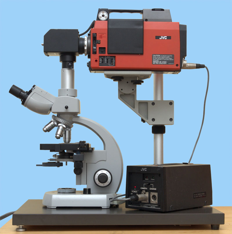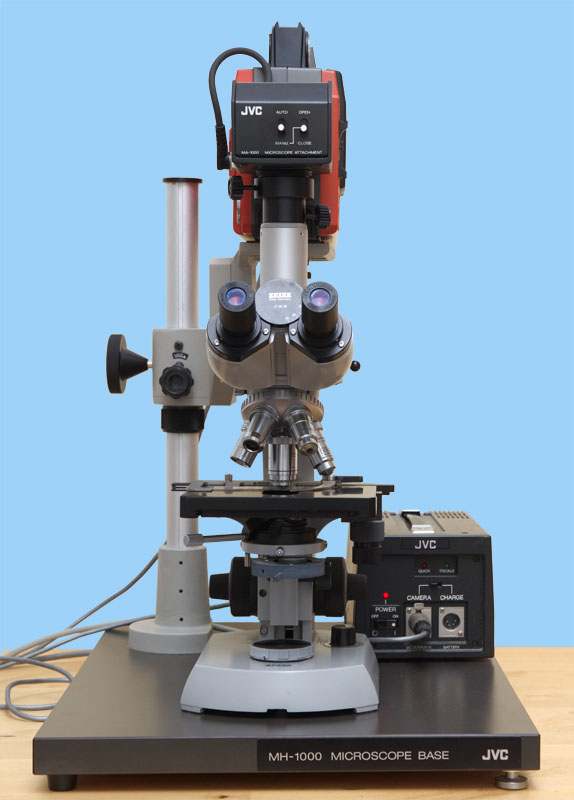 Beim Verwenden einer traditionellen Fernsehkamera am Mikroskop sind einfache Adapter, die eine kleine Kamera halten können, überfordert. Ebenso wäre es das Stativ des Mikroskops, welches nicht zum Tragen eines weit nach oben ragenden schweren Gewichtes konzipiert wurde. Daher wird die Fernsehkamera nicht direkt auf das Mikroskop montiert, sondern auf ein separates Stativ.Das üblicherweise nach vorne ragende Objektiv entfällt. Stattdessen wird die optisch/mechanische Verbindung zwischen dem Mikroskop und der Kamera durch das Modul 'MA-1000 Microscope Attachment' hergestellt. Darin befindet sich eine optische Umlenkung des vom Mikroskop senkrecht nach oben geworfenen Bildes um 90° in die waagerecht auf dem eigenen Stativ montierte Kamera.