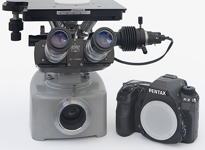Unitron MeC 10292 Metallurgisches Mikroskop mit Pentax DSLR am Kameraausgang.