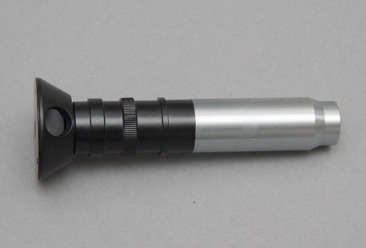 10x Zeichenokular. Die seitliche kreisrunde Öffnung ist ein Fenster zum Blatt Papier, das vor ein Mikroskop gelegt wird. Man sieht das Präparat und die Zeichenunterlage gleichzeitig im Okular.