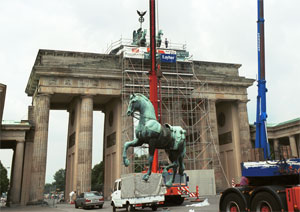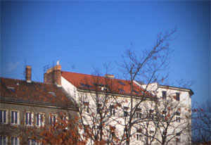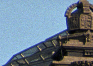 | Perspektivische Verzeichnung Fotografiert man ein Gebäude mit schräg nach oben gerichteter Kamera, entstehen stürzende Linien. Das Vermeiden dieses Effekts war einer der großen Vorteile der Fachkameras. Die meisten Bildbearbeitungsprogramme enthalten ein Korrekturwerkzeug. Die Anwendung ist einfach. |