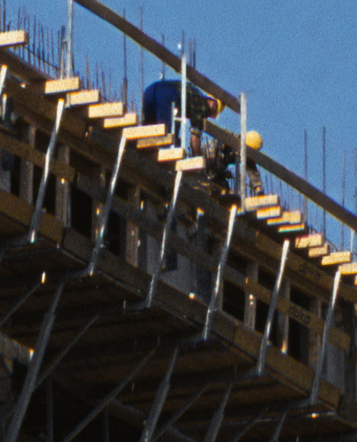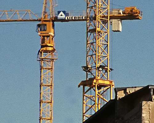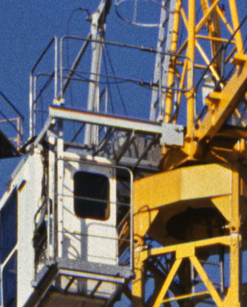 Jeder Scanner wird nur mit entsprechender Methodik und Erfahrung richtig ausgereizt. Ein moderner filmtauglicher Epson Flachbettscanner der Consumer-Oberklasse ist ein gutes Gerät zum Scannen von Mittelformaten und größeren Filmen. Das Ermitteln des richtigen Abstands zwischen Film und Glas soll die Qualität der Dateien erhöhen. In einschlägigen Foren gibt es dazu erstaunliche Meldungen. Ein Flachbettscanner ist vielseitiger als ein ArtixScan 120tf, der aber bei hoher Auflösung mehr Details aus den Vorlagen herauszaubert. Er bringt eine bessere Zeichnung in dunkle Partien, was in den Ausschnitten rechts unten im Krangestell eindrucksvoll zu sehen ist. Der Detailgewinn lohnt sich für große Prints ab Din A3 oder für Ausschnitte. Zur Verfeinerung der ArtixScan-Dateien sollte man mit NoiseNinja oder NeatImage experimentieren.