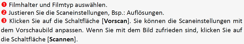 Damit ist Frust vorprogrammiert. Schritt 1 ist korrekt. Allerdings ergibt Schritt 3 nur dann Sinn, wenn sich im Filmhalter lediglich ein einziges Bild befindet. Das ist jedoch eher die Ausnahme.