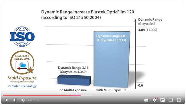 In einem SilverFast-Video von LaserSoft Imaging wird angeraten, beim Plustek OpticFilm 120 stets Multi-Exposure zu aktivieren, um einen größeren Dichteumfang zu erreichen. Allerdings verlängert sich dadurch die Scandauer und der Scanner wird durch das mehrfache Vor- und Zurückschieben des Filmhalters stärker belastet.
