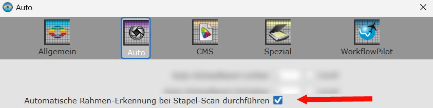 Haken setzen bei 'Automatische Rahmen-Erkennung bei Stapel-Scan durchführen'