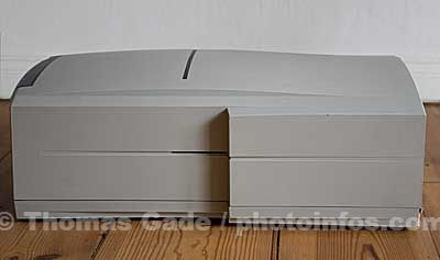 Sein äußerlich fast baugleicher Nachfolger mit dunklem Gehäuse, der Sprintscan 45 Ultra, leistet bereits wesentlich mehr, vor allem beim Dynamikumfang und hinsichtlich der Auflösung. Beide Scanner funktionieren mit etwas unhandlichen Filmhaltern. Die Masken werden magnetisch auf dem Blechrahmen fixiert. Die Mittelformatlösungen sind nicht sehr schön, weil Filmstreifen mit mehreren Bildern nicht in die Masken passen.
