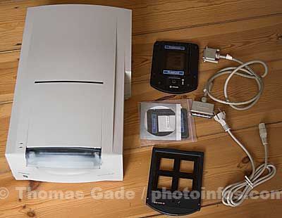 Scanner, Netzkabel, SCSI-Kabel, Handbuch, Filmhalter für 4x5 inch, Adapter für Rollfilm, 35 mm Einzeldia, 4-Dia-Halter, Software  .Die seinerzeit genannten Mindestanforderungen an den PC muten inzwischen abenteuerlich an: