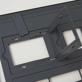 Da der Scanner eine Stapelscanfunktion hat, wäre es schön, weitere Scanrahmen zu haben, die den Verwendungumfang erweitern. So sollten Rahmen zu haben sein, die ausschließlich Kleinbildfilmstreifen oder gerahmte Dias aufnehmen. Mittelformate lassen sich nur als Einzelbilder in den glaslosen Rahmen einzuspannen. Andererseits ist es nicht schwierig, sich eigene Rahmen zu basteln oder herstellen zu lassen, die für die eigenen Wünsche optimiert wurden. Auf der Webseite www.astronomie.de gibt es Foren, in denen Hobbyastronomen über den Selbstbau von Teleskopen diskutieren. Es sind Leute darunter, die Zugang zu einer digital gesteuerten Fräse haben, mit der man alles mögliche aus dünnen Aluminiumplatten herausarbeitet. Unter ihnen dürfte man jemanden finden, der für einen akzeptablen Betrag ein paar maßgeschneiderte Rahmen herstellt.