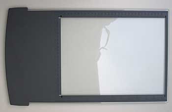 Für Aufsichtvorlagen hat der Agfa einen Einschub mit einer großen Glasplatte.