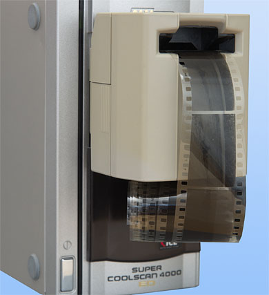 Nikon Coolscan 4000 beim Scannen eines langen Filmstreifens
