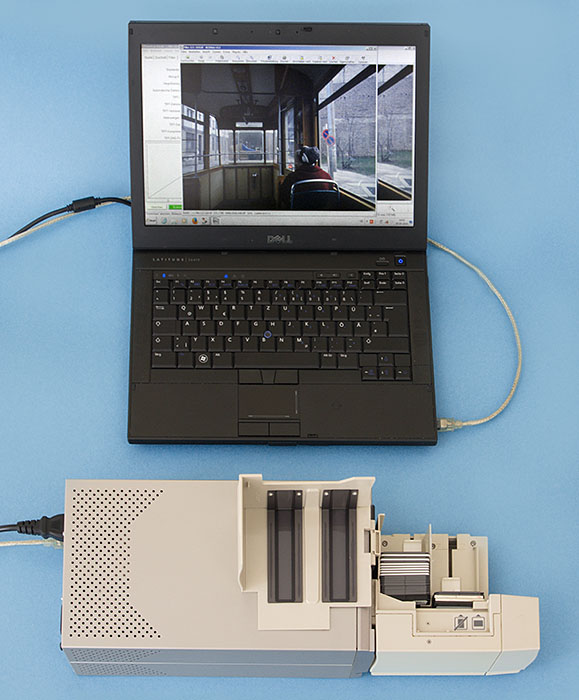 Nikon Super Coolscan 4000 mit Slide Feeder am Laptop