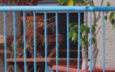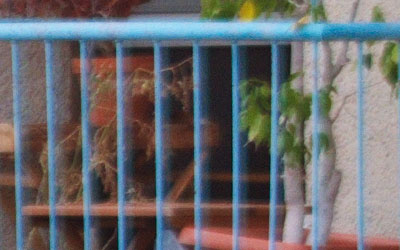Im Zentrum bilden beide Objektive ab Blende 5,6 hervorragend ab. Unterschiede werden jedoch am Bildrand erkennbar. Zum Vergleich wird ein kleiner Ausschnitt mit einem Teil eines Balkon am linken Bildrand betrachtet.