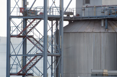 Zum Vergleich wurde die Treppe eines Kraftwerks mit der Pentax K-5 II (DSLR) mit und ohne SMC-Pentax 2,8/40 mm Objektiv an einem Kowa Prominar TSN 883 Spektiv fotografiert. Erstaunlicherweise sieht man in beiden Fällen fast den selben Bildwinkel. Die Belichtungszeit betrug 1/60 Sekunde und die Luft flimmerte etwas. Deshalb sind die Aufnahmen etwas unscharf.