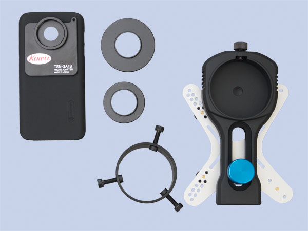 Links: Kowa Smartphone Adapter. Gut, weil paßgenau und leicht