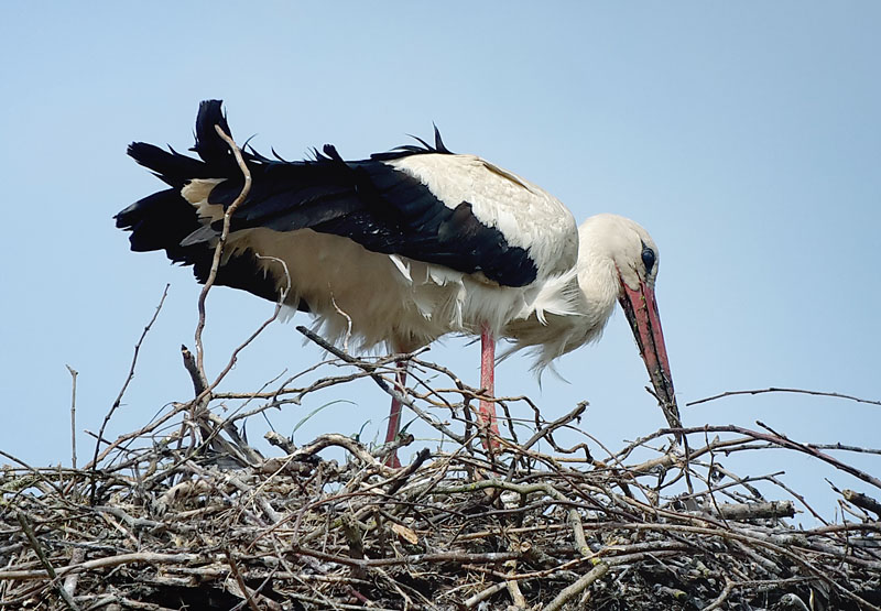 Storch im Horst. Samsung Galaxy S5 an einem Kowa Prominar TSN 883. Super!