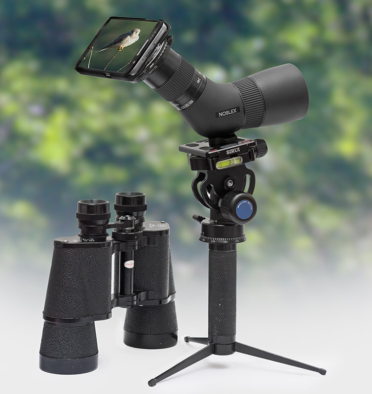 Beim Digiscoping wird ein Spektiv als Televorsatz für Kameras verwendet. Viele Smartphones sind sehr gut dafür geeignet. Ihre Kameraobjektive müssen (so wie das menschliche Auge) in das Okular blicken, um das Bild anzuzeigen oder aufzunehmen. Und genau so, wie das menschliche Auge den richtigen Abstand und die richtige Position zum Okulare finden muss, um mit bester Bildqualität sehen zu können, muss auch die Kamera des Smartphones richtig positioniert werden. Das ist nicht einfach und viele preiswerte Smartphone Adapter sind in der Praxis fummelige und nicht gerade erfreuliche Konstrukte, weshalb ich stattdessen meistens den Bau eines eigenen, genau passenden Adapters empfehle.