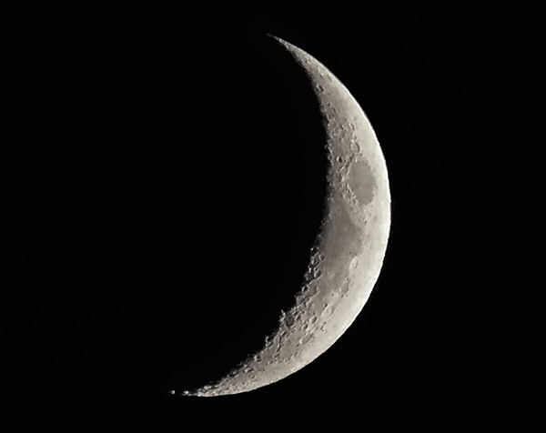 22. 8. 2020. Mond fotografiert mit einem Samsung S7 am Noblex NS 8-24x50 ED. Ausschnitt aus dem Bild