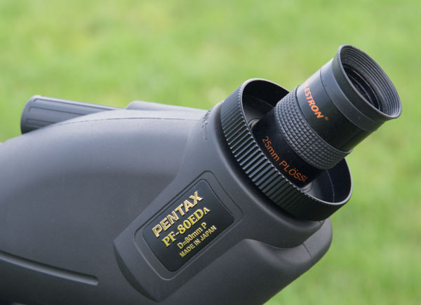 Pentax Spektive haben für Okulare das 1 1/4" Steckmaß, das auch bei Teleskopen üblich ist. Somit ist das System sehr flexibel und eine wohltuende Ausnahme unter den High-Tech Spektiven. Diesen Vorteil darf man nicht unterschätzen, vor allem nicht, wenn bereits eine astronomische Ausrüstung vorhanden ist.