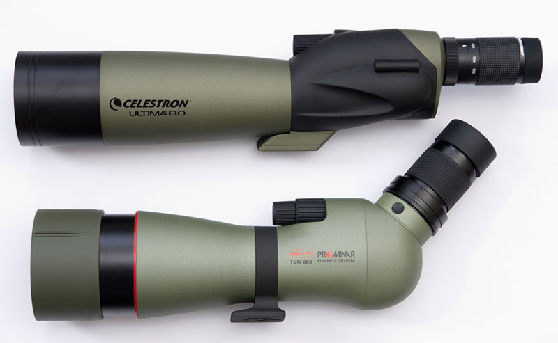 Oben: Celestron Ultima 80 mit geradem Einblick