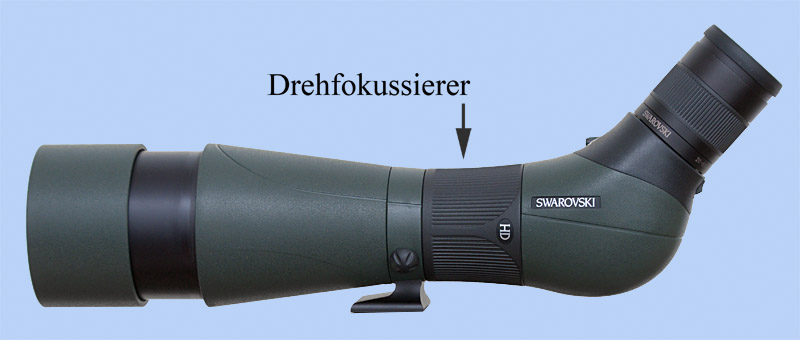Am Tubus gibt es einen breiten mit Gummi ummantelten Scharfstellring. Dadurch wirkt das Spektiv zierlicher als andere in seiner Klasse, die mit einem aufgesetzten Dual-Speed Fokussierer versehen sind. Welche Art der Scharfstellung besser ist, entscheidet vor allem der persönliche Geschmack. Unterwegs kann man das Swarovski ATS 80 HD wegen der fehlenden aufgesetzten Dual-Fokus Drehknöpfe sehr gut in der Armbeuge tragen. Die Sonnenblende ist herausziehbar und für den Transport wieder einzuschieben. Am Spektiv befindet sich eine Rotationsschelle mit Stativfuß.
