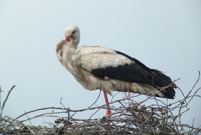 Storch im Horst in Linum. Foto mit Zeiss Conquest Gavia 85 und Pentax K-3 mit SMC-Pentax 2,8/40mm