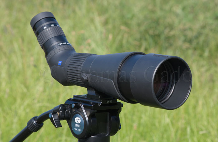 Ein gutes Stativ ist auf alle Fälle nötig, um das Leistungspotenzial dieses Spektivs auszuschöpfen. Empfehlenswert ist ein Fluid-Videokopf, dessen Bewegung etwas gebremst ist. Damit vermeidet man einerseits, dass das Spektiv bei gelöster Klemmung unkontrolliert nach unten klappt und hart anstößt. Andererseits erlauben solche Köpfe ein bequemes Ausrichten und Nachführen in der Naturbeobachtung. Dies kommt nicht nur visuellen Beobachtungen zugute, sondern auch fotografischen und filmischen Anwendungen. Zeiss erfüllt mit diesem Spektiv hohe Ansprüche und berücksichtigt auch die Belange von Digiskopierern.