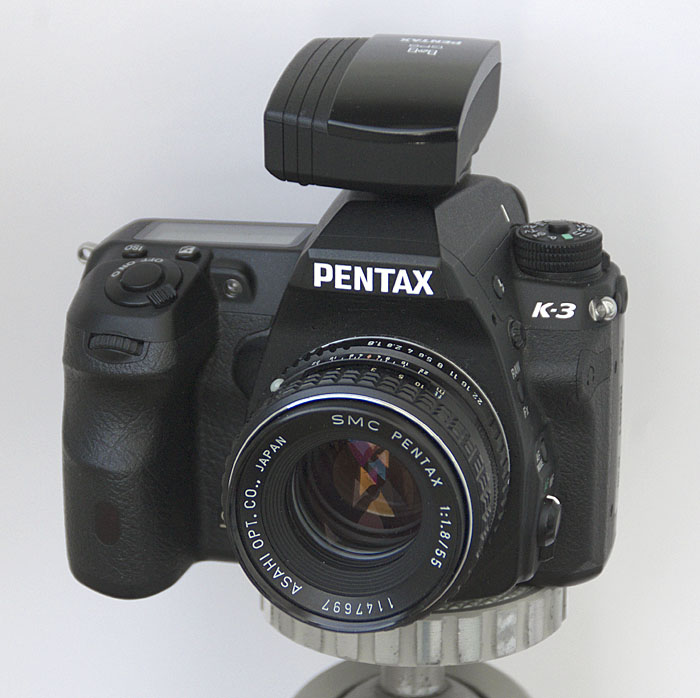 Pentax K-3 mit O-GPS1 Einheit und 55mm Objektiv.