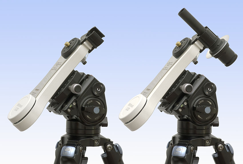 Omegon LX3 Astrotracker. Links ohne Polsucher, rechts mit Polsucher
