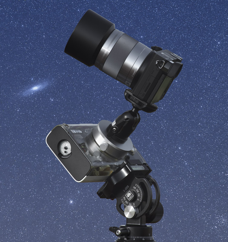 Sony α6300 mit Sony E 50mm F1.8 OSS auf Vixen Polarie Star Tracker. Stativ von SIRUI mit L-20S Panoramaneigekopf