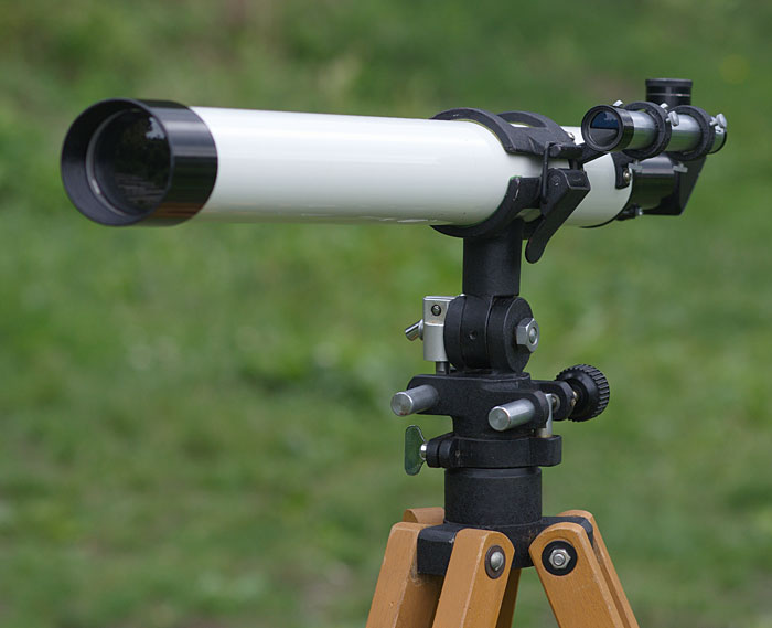 Dies azimutale Montierung des Unitron 75mm Refraktors passt prima zu den Holzbeinen eines Vixen GP Stativs.