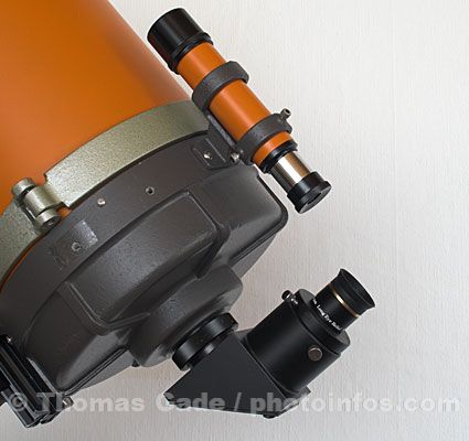 Oben links sieht man einzelnes Okular im 2" Zenitspiegel.