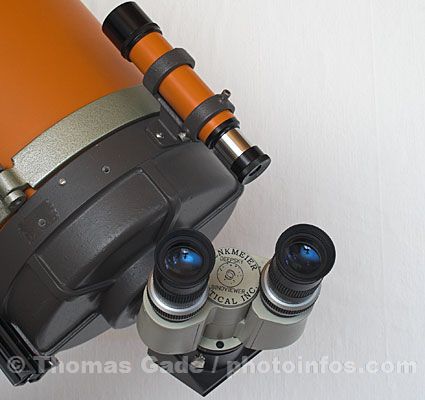 Binokulare verlängern den Abstand zwischen den Okularen und der Teleskopoptik. Der sogenannte 'Glasweg' beträgt je nach Konstruktion zwischen 100 bis 140mm und hat zur Folge, dass ein Scharfstellen des Bildes mit vielen Teleskopen ohne Hilfsmittel nicht möglich ist.