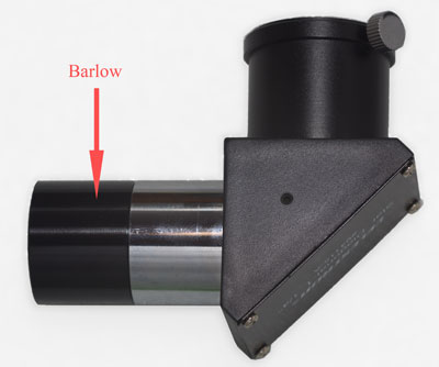 Meade model 140 Barlow an einem 1 1/4 Zoll Zenitprisma.