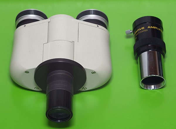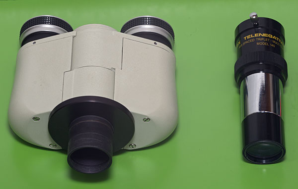 Link: Denkmeier Bino, rechts: Meade 2x Triplet Model 140 Barlow
