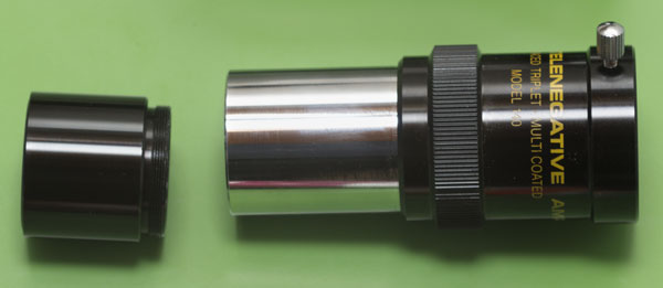 Das optische Element der Barlow läßt sich vom Tubus abschrauben ...