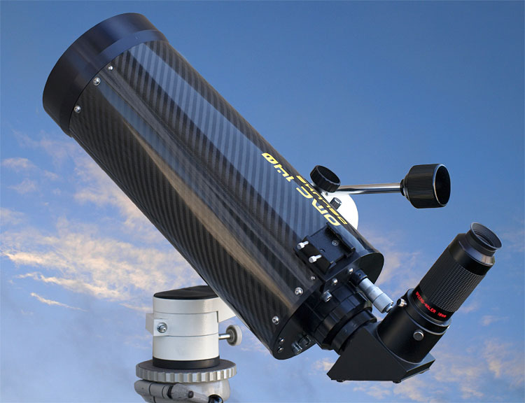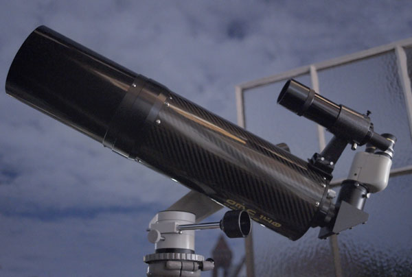 Thomas Gade - 2011Das OMC 140 Deluxe ist ein Maksutov-Teleskop mit Gregory Design. Der Tubus besteht aus hochglänzendem Carbon. Die Fassungen der Frontoptik und des Spiegels sind aus CNC-gefrästem Metall. Es ist dunkel gefärbt - wahrscheinlich eloxiert - und leider schnell verkratzt.